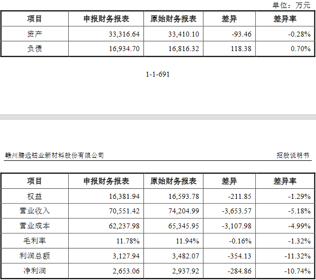 腾远钴业表示,原始财务报表和申报财务报表存在差异,其中2014年涉及项目较多。2017年,公司前次申报时,申报财务报表与原始财务报表的差异发生在2014年度和2015年度,2016年度和2017年1-6月无差异。该等差异主要发生在报告期初,除了部分属于日常会计处理疏忽导致的差异外,调整的主要原因是公司在IPO辅导阶段,对日常会计核算进行更细致化的梳理,梳理后各个科目核算更准确反映企业的实际情况。