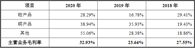 2018年至2020年,华友钴业毛利率分别为28.56%、10.68%和14.75%,寒锐钴业毛利率分比为45.33%、11.77%和23.84%。
