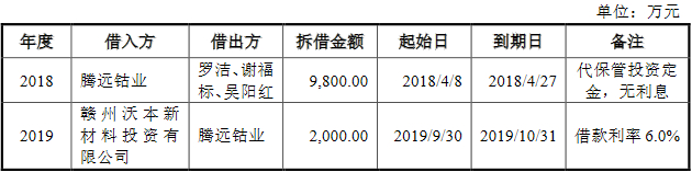 2019年9月30日,腾远钴业向赣州沃本新材料投资有限公司拆出资金2000.00万元,次月31日到期,借款利率6.0%。赣州沃本新材料投资有限公司为罗洁配偶黄平持股99%并担任其董事长。