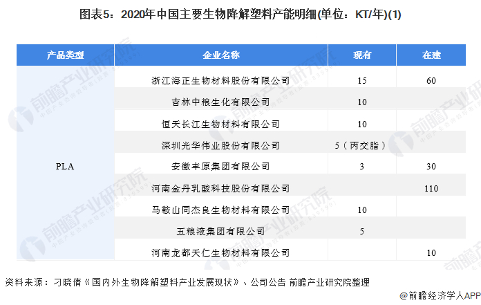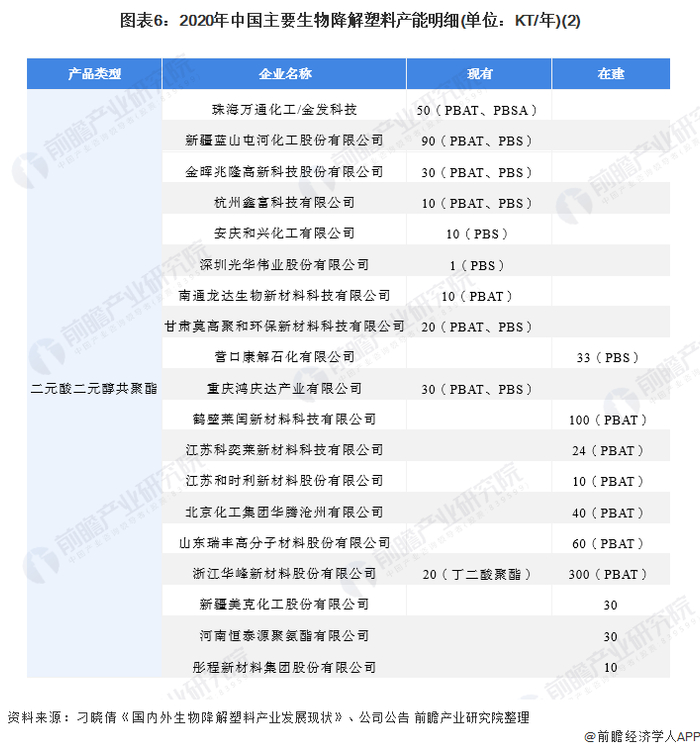在国家政策及市场需求的驱动下,我国生物可降解塑料行业企业也加紧产能布局,2020年,代表性企业的拟建产能明细如下: