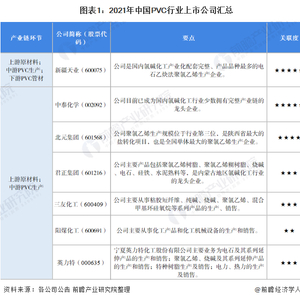 原标题:【最全】2021年PVC行业上市公司全方位对比(附业务布局汇总、业绩对比、业务规划等) 来源:前瞻产业研究院