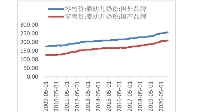 除了整体价格水平高于国外,近年来国内奶粉价格也在不断上涨。