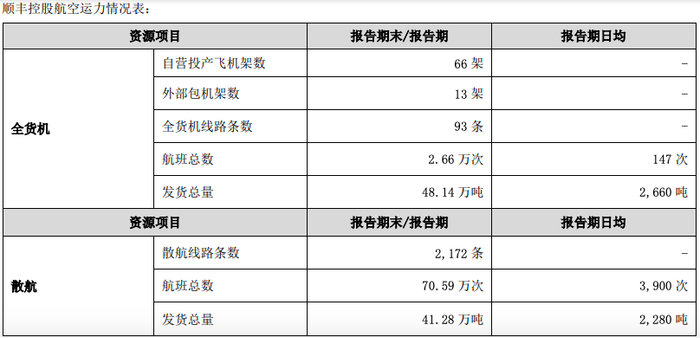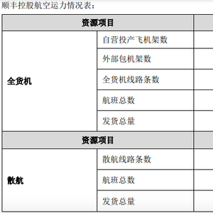 顺丰控股航空运力情况表