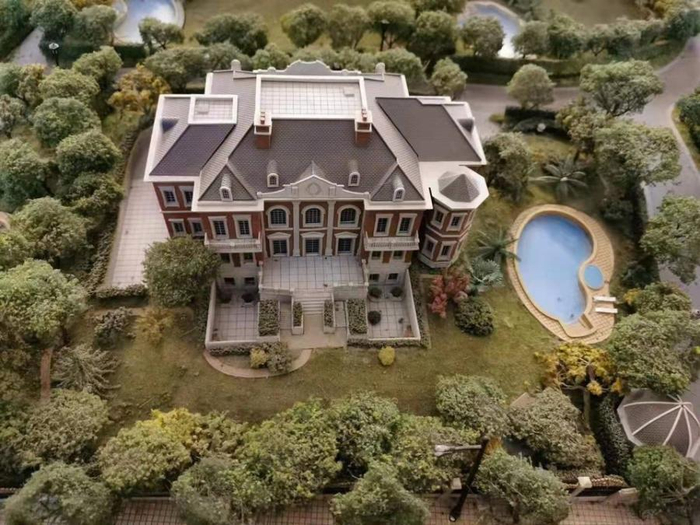 “西有檀宫,东有君庭”,说的是上海两个天花板级别的别墅花园小区,后者正是这套法拍房所在的华洲君庭,该楼盘位于上海浦东东郊别墅区,靠近张江。根据公开资料,华洲君庭一共仅21套独栋别墅,每栋占地5亩,风格各异,建筑面积在1300~1400平方米之间,超过1000平方米的花园、游泳池、按摩池、室内电梯等都是标配。