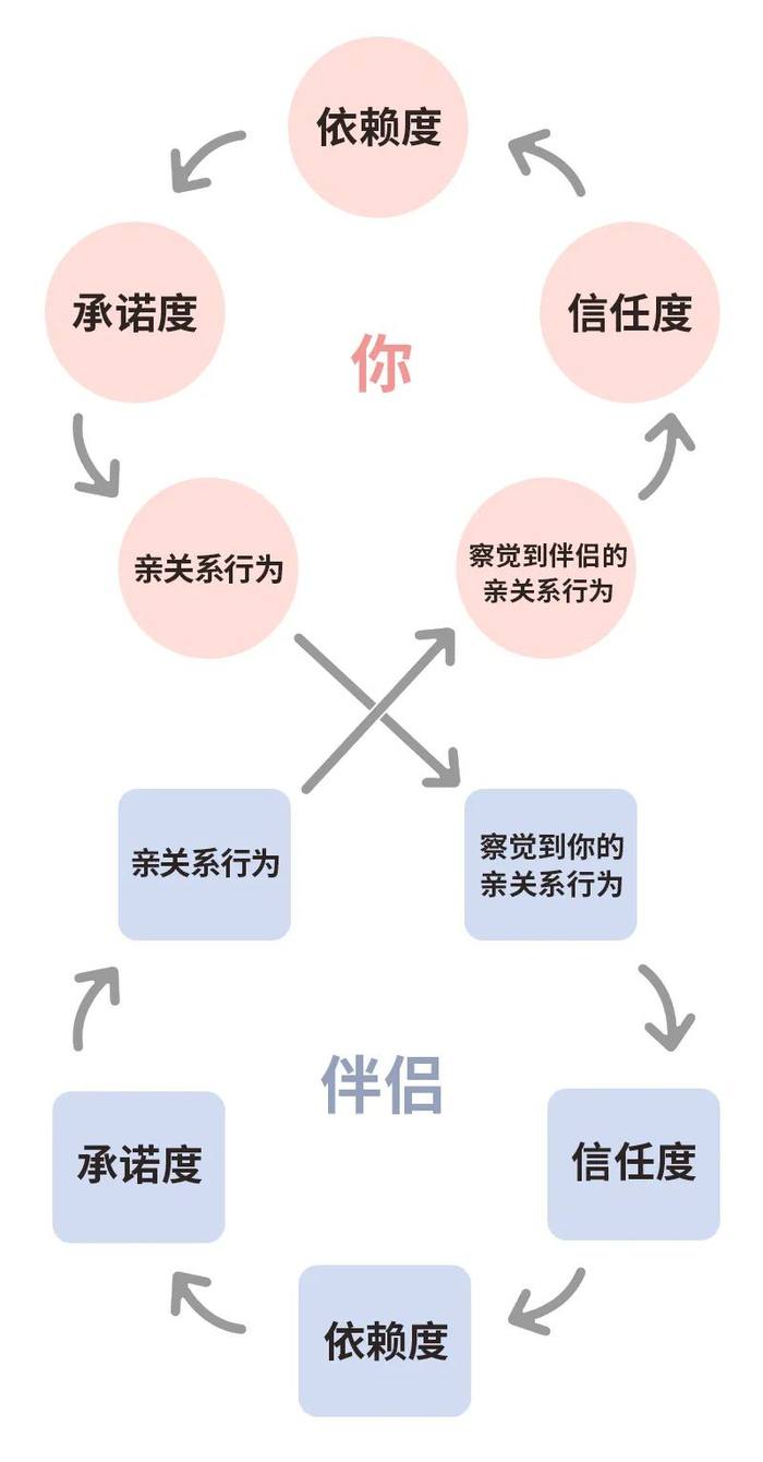 当一个人观察到伴侣做出亲关系行为时,ta对伴侣的信任会逐渐增加,依赖度也会随之增加,ta对关系的承诺感便因此上升。