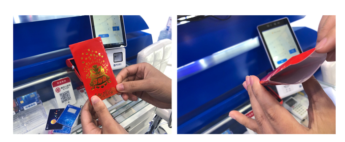 “有的人会对数字钱包的安全性要求比较高,就有录入指纹的需求;有些人希望可以看到钱包余额与支付金额,那么我们也有可视屏显示的选择,如果有人不希望暴露隐私,也有可视屏5秒清除的选择;有的年轻人喜欢炫酷,那么我们也有LED钱包和纸质钱包,前者支付的时候,卡片上的图案会根据余额总量呈现红绿黄三种亮光,后者可当作礼品相送。”工作人员向界面新闻解释称。