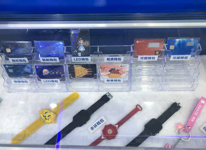 不过数字人民币的魅力不止在于支付方式的便捷,此次服贸会上,各类数字人民币硬件钱包则向参观者展示了载体的多样化。