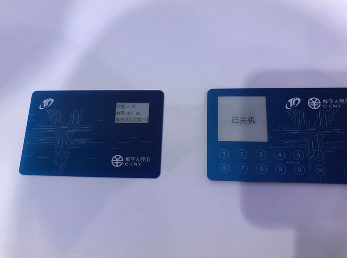 以上卡式钱包外表与普通银行卡接近,可视钱包则增加了一寸见方的电子墨水小屏,能显示交易金额、余额信息,刷卡消费时一目了然;不过,令界面新闻记者最感惊奇的当属纸质钱包,该钱包触感与视觉效果都与普通的纸张无异,外表看起来并无任何科技成色,但经工作人员演示,同样可以完成双离线支付功能。