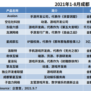 企查查数据显示,2021年1-8月,成都共有35次投融资事件,共涉及31个品牌,其中披露金额达到26.8亿元。其中,12个投融资事件与游戏、动漫有关,腾讯、B站参与的共有10起,占比高达83.3%。在这12起投融资事件中,涉及10家游戏开发商以及2家动漫IP运营商。而在他们之中,有7家的产品与“国风”有关。