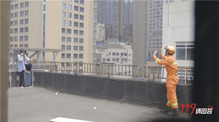 第一集中,失火的小商品市场位于解放碑放碑附近的坡地,市场内多是纸张、衣服等易燃物品,着火点位于13层,而着火点往上是20层在等待救援和疏散的群众。楼上是尚未扑灭的大火和滚滚的浓烟,楼下是焦急等待的家属。灭火就要断电,1个消防员只有1个他救面罩,消防员只能背着15公斤重的设备在80度的高温中不停上下往返。