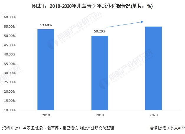 世界卫生组织此前的研究报告显示,中国近视患者人数多达6亿,青少年近视率居世界第一。中国已经成为世界第一近视大国。更令人担忧的是青少年——全国儿童青少年近视情况调查结果显示,2018年全国儿童青少年总体近视率为53.6%,2019年为50.2%。受疫情期间居家隔离、线上课堂等影响,2020年全国儿童青少年总体近视率较2019年有小幅上升。除了发病率高,国内儿童青少年中的高度近视比例也呈上升趋势。