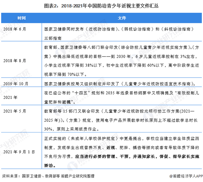 眼健康问题关系到青少年健康成长,也是关系国家未来的大问题。近年来,防控近视已经被上升成国家层面的战略。从2018年以来,国家卫健委、教育部等相关部门已经多次出台文件,聚焦防治青少年近视。