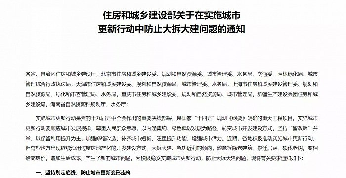 8月30日,住房和城乡建设部(以下简称“住建部”)发布《关于在实施城市更新行动中防止大拆大建问题的通知》(以下简称《通知》)。