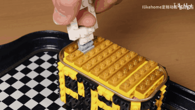 除了刚才介绍的芝士牛排和流心蛋包饭,这位叫 I like home 的老哥还有挺多这类 “ 美食 ” 视频,原材料也都是乐高~