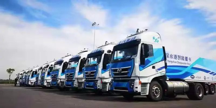 同时,14辆上汽智能重卡正行驶在从深水港物流园到洋山码头的73.5公里长的固定路线上,中间途径东海大桥。每辆车上配备了1名安全员、4个激光雷达、14个摄像头、5个毫米波雷达、14个超声波雷达,一路还有中国移动5G网络保驾护航。