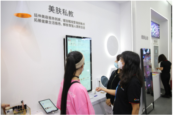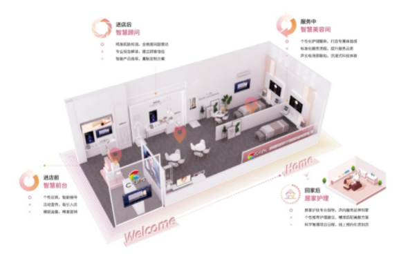 一方面,在美容院,打造智慧前台、智慧顾问、智慧美容间核心服务场景,通过智能化接待、专业化精准测肤、个性化护理服务、沉浸式声光电体验等服务,实现服务流程标准化、服务场景定制化、服务轨迹可视化,从而帮助美容院实现门店快速复制、服务精准化的需求。