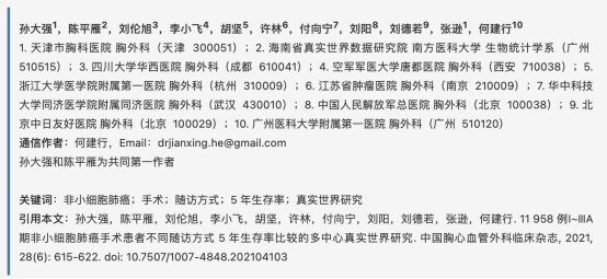 聚焦“对于NSCLC 术后患者,积极主动的随访是否能带来潜在的生存获益”这一课题,该研究通过比较Ⅰ~ⅢA 期非小细胞肺癌(NSCLC)术后患者不同随访方式五年生存率,发现非小细胞肺癌患者术后主动随访可以获得提高远期生存率的益处、且病理分期越晚的非小细胞肺癌患者术后主动随访的生存获益越明显。