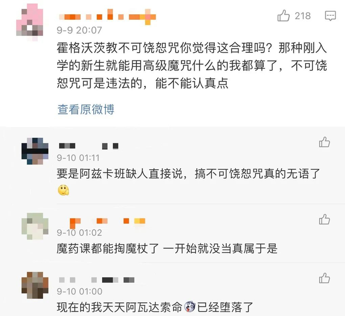 很多原著粉质疑游戏“内容设计与《哈利·波特》原设定相违背”。北京商报记者在体验该游戏时发现,新生一入学就能够使用“火焰熊熊”等高级魔法并召唤神兽,“这在原IP中是不可能的”。此外,很多在原IP的霍格沃兹魔法学校中不会接触到的黑魔法,在游戏竞技中却成为了出场率最高的魔咒之一。