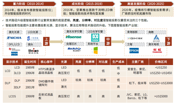 图表:智能投影产业链复盘及技术列示
