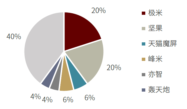 图表:中国智能投影品牌线上零售额市场份额(2020)