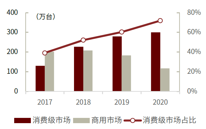 图表:中国智能投影出货向消费级市场集中