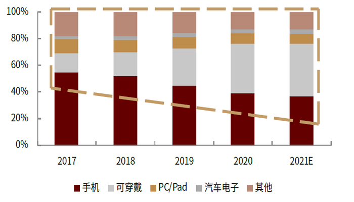 图表:A股消费电子产业链IoT收入占比逐年提升