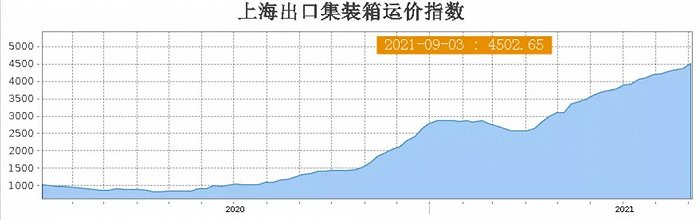 据「探客Tanker」了解,反映国际整体海运运价走势的“波罗的海运价指数”自去年5月14日393点开始上涨,截至2021年9月7日,波罗的海运价指数为3707点,上涨幅度达9.43倍。