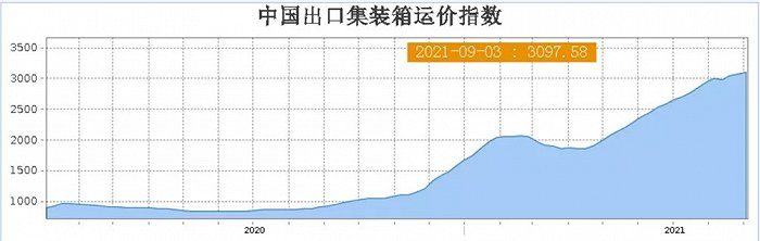 截止9月3日,上海航运交易所发布的中国出口集装箱综合运价指数平均值为3097.58点,较6月平均上涨15.0%;反映即期市场的上海出口集装箱综合指数平均值为4502.65点,较6月平均上涨11.0%。