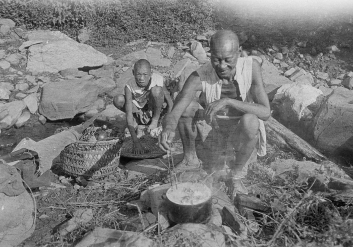 1917年,在路边吃饭的劳工,西德尼·甘博拍摄于四川安县。
