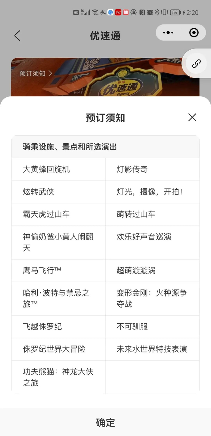 如果你想一次性体验完热门项目,那么推荐购买优速通卡,单日无限次优速通500元,单日单次优速通400元,适用范围如下: