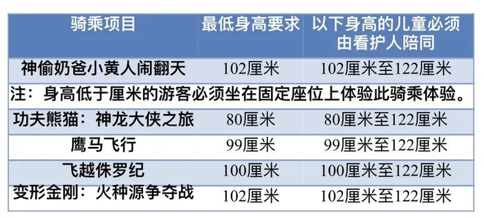 哪些项目有游玩身高限制?
