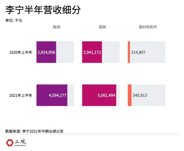 而李宁和特步虽然还是“单品牌”,但在品类上却超越了原先的服装领域:据统计,今年上半年李宁零售额增加92%,运动型潮流时尚用品同比增长116%,而跑步、篮球、健身类和非核心品类则分别比2020年同期增长87%、80%、69%。