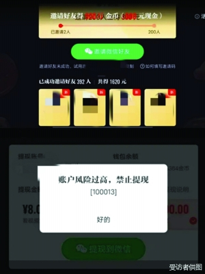 消费者夏女士在一个月前通过朋友介绍,得知在片多多看视频、拉新能赚钱,便下载了片多多。“平台上介绍说邀请1-3人,每人奖励5元;邀请4-7人,每人奖励10元;邀请8-10人,每人奖励15元。最后,我前前后后总计拉来了392人,按照他们的这个算法,我的提款金额应该能到1620元。”夏女士如是说。