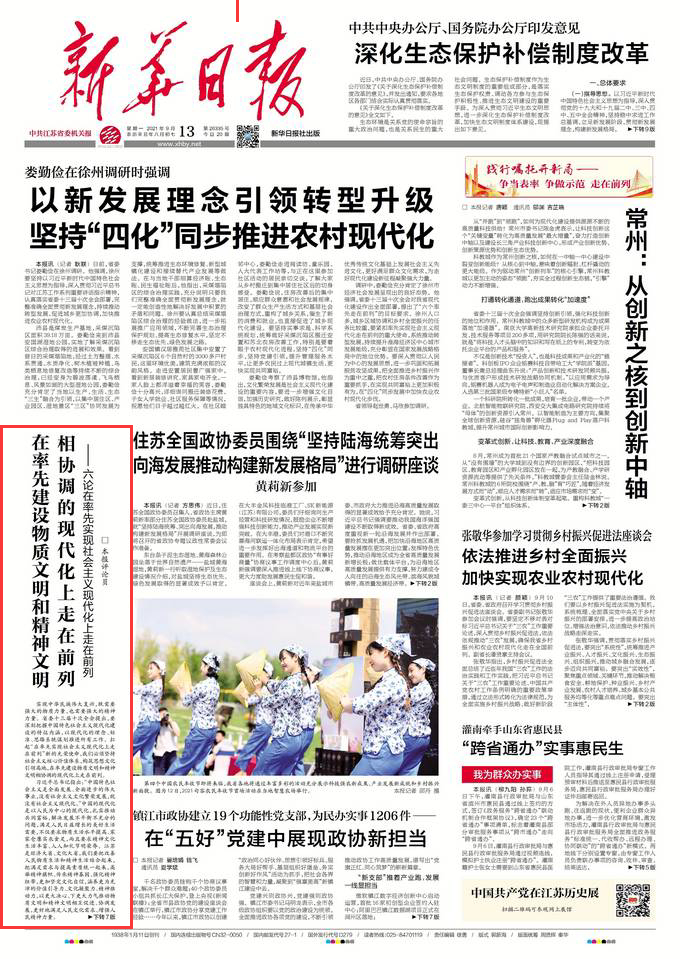 新华日报评论:在率先建设物质文明和精神文明相协调的现代化上走在前列