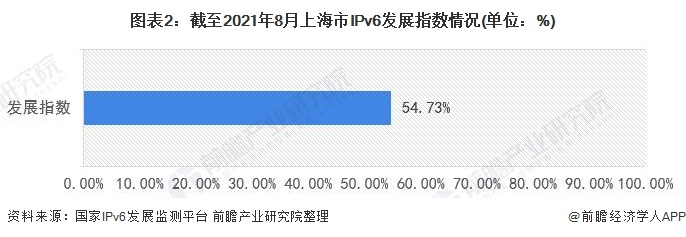 据国家IPv6发展监测平台数据,截至2021年8月,上海地区IPv6发展指数54.73%,处于较高水平。