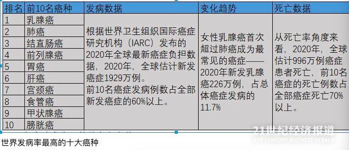 原标题:21CC|全球996万人的“死亡图谱”:十大癌症夺走超7成人生命
