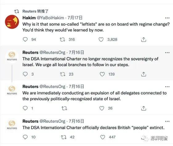 这也并非该账号第一次发布戏谑网友的假消息,今年7月,该账号发布推文称,美国最大的社会主义组织——“美国民主社会主义者”(Democratic Socialists of America)不再承认以色列的主权。当时就有推特用户评论指出:“或许哪天成真了也不一定,但这个账号没有认证,而且刚注册不久。”