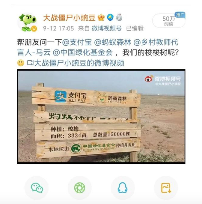 蚂蚁森林回应未种梭梭树质疑:“在呢,就是有点矮”