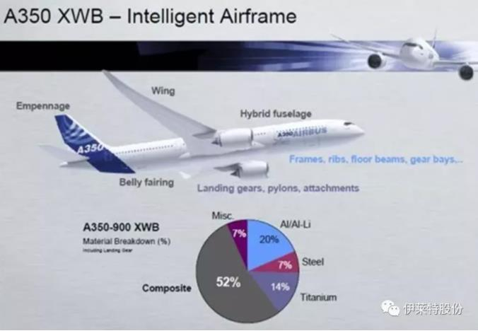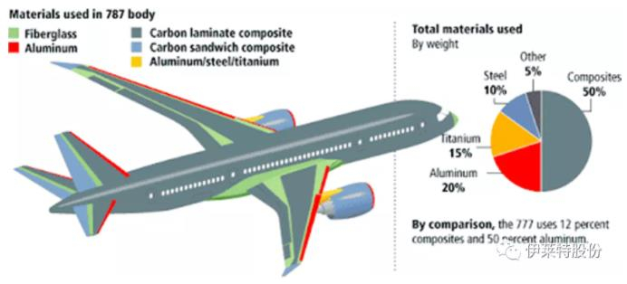 目前,波音787、空客A350这些飞机,碳纤维部件的用量已经占到机身的一半。