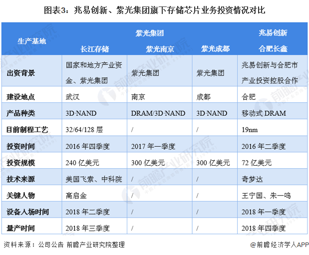 ——存储芯片产业投资:紫光集团投资规模较大