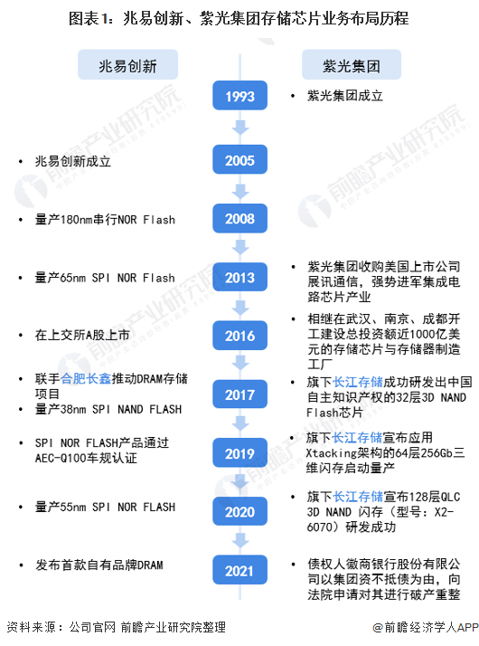 1、兆易创新VS紫光集团:存储芯片业务布局历程