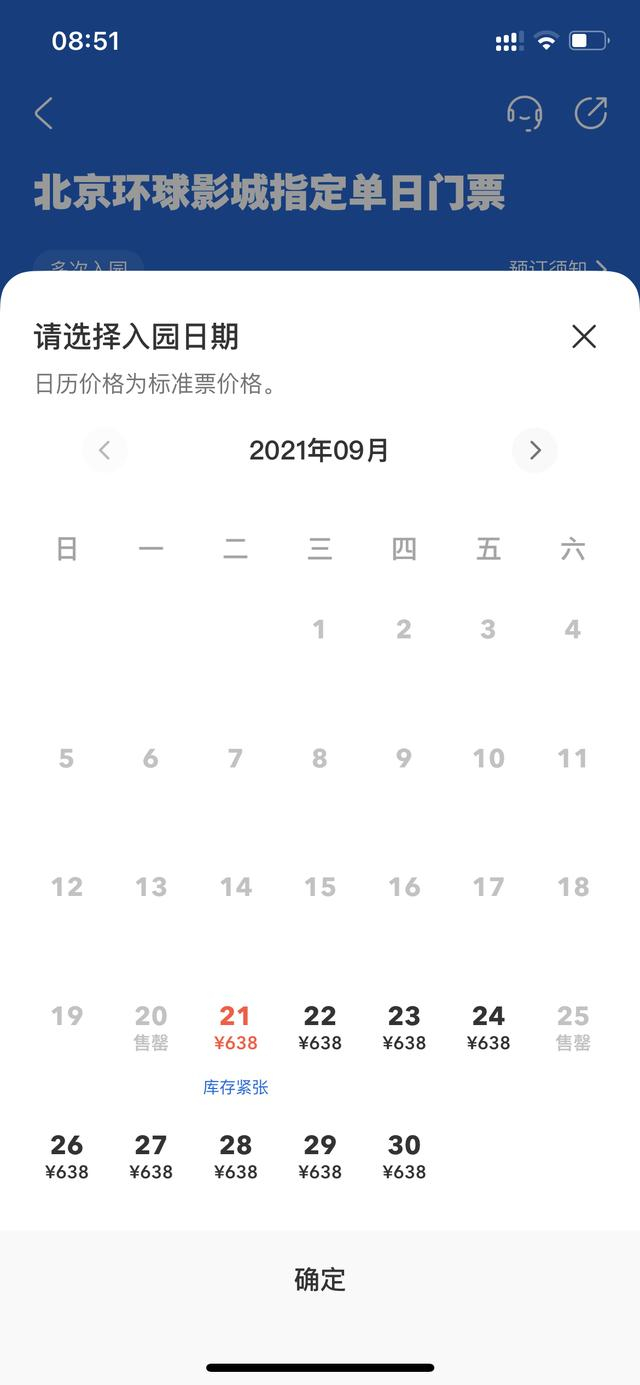 截至9月14日上午11时,9月20日-30日“环球优速通”中仅剩26日和28日还有余票,9月20日至11月8日的“环球无限优速通”(售价450元起)也显示售罄。但以上库存情况刷新后会产生变化,偶尔也有少量余票放出。