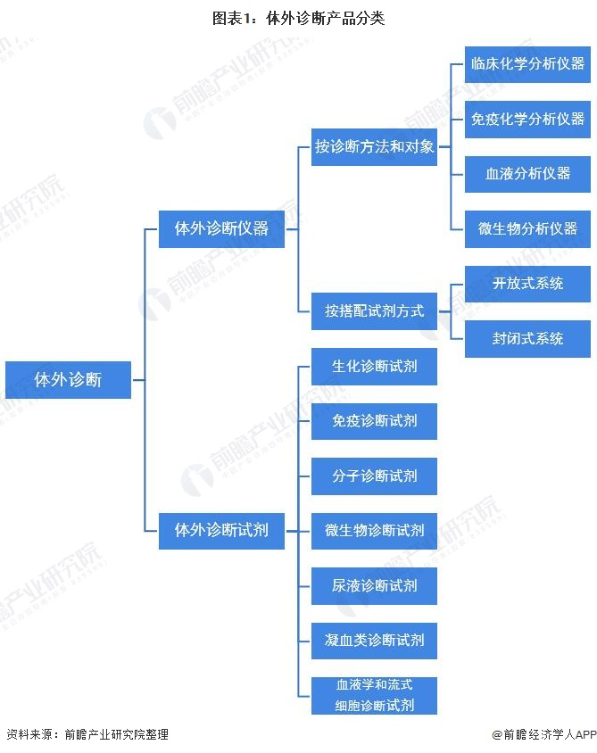 体外诊断产品主要由诊断设备(仪器)和诊断试剂构成。根据我国国家食品药品监督管理局(SFDA)的《医疗器械分类目录》标准,体外诊断设备属于临床检验分析仪器类。