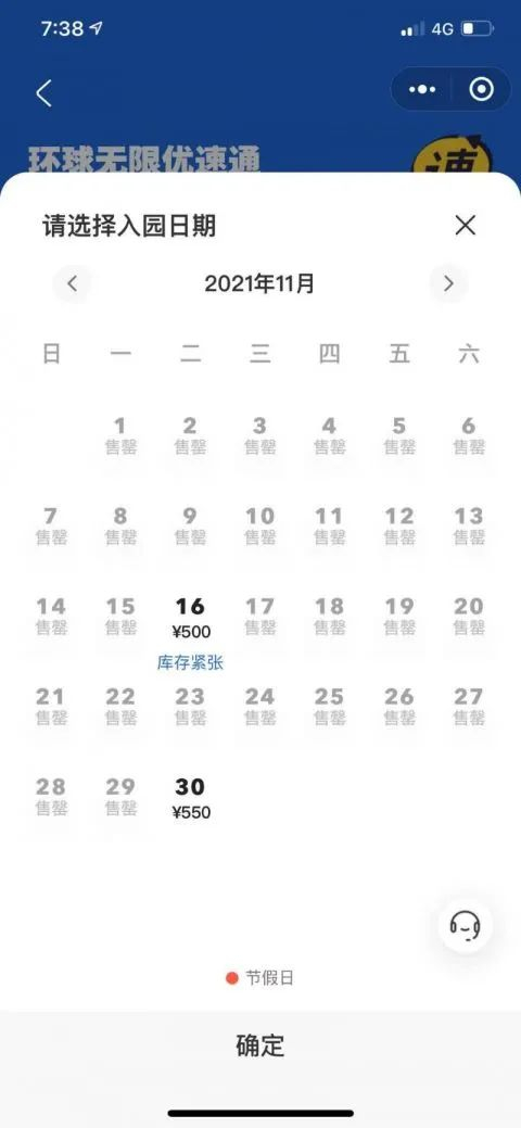 可能是被此前流传出的北京环球影城人多、各种排队的传闻“吓坏”了,门票开售之后,优速通产品的销售似乎比门票还要火爆。截止到早7点半,9月20日至30日,除了28日仍有余额外,其余日期的“环球优速通”均售罄,十一假期期间,也只有1、2、4、5几天还有剩余。“环球无限优速通”的售卖更加“夸张”:北京环球度假区微信小程序显示,9月20日至11月30日期间,只有10月3日、19日两天及11月16日、30日两天尚有余票,其余日期均显示售罄。