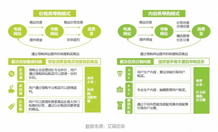 目前,市面上主流的几个导购平台可以分成两种:第一种,消费者在平台上购买商品可以获得消费返利或折扣,比如返利网、淘粉吧、惠惠网;第二种,消费者通过图文、视频内容了解品牌和产品信息,可以快速达到“种草”或“拔草”的目的,比如小红书、什么值得买、蘑菇街等。前者以价格导向,后者以内容导向,解决的是两个问题:省时和省钱。