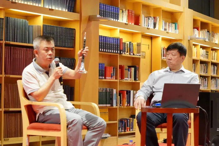主讲人《循音问乐》的著作者者梅弘夫谈了对编著这本书的初心,他说其实有很多人对我们的民族音乐抱有浓厚兴趣,而民族音乐的基础就是民族乐器,所以希望有一本可以系统介绍民族传统乐器的书和有声鉴赏读物。《循音问乐》由龙源音乐监制,上海音乐出版社出版。
