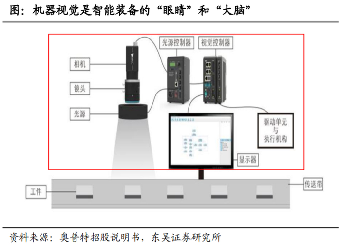 机器视觉堪称智能装备的“眼睛”和“大脑”,可应用于电子设备及泛半导体(46.6%)、汽车(15.3%)、制药(7.2%)、食品包装等多领域。