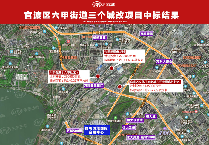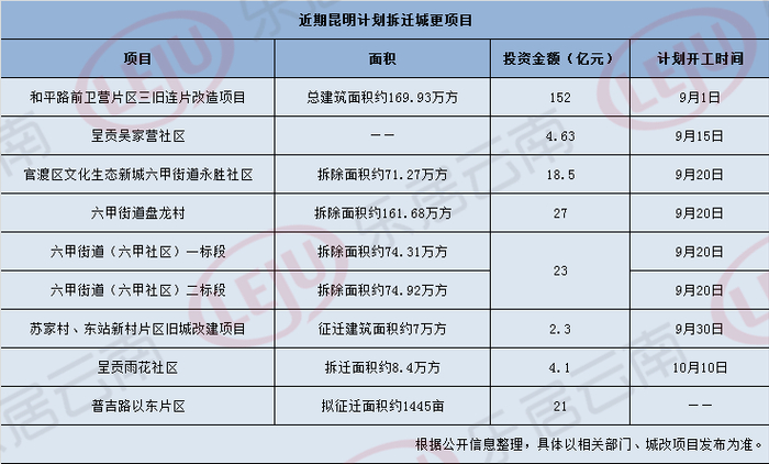 同样位置优越的,还有官渡文化新城六甲街道的永胜社区、六甲社区、盘龙村,三个城改项目拆迁拆除的计划开工时间都是9月20日。