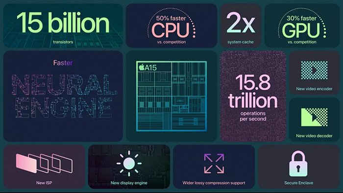 我努力去寻找亮点,iPhone 13 mini、iPhone 13手机都采用了亮度更高的XDR超视网膜屏,亮度提升28%,最高可达1200nit,支持HDR等等。同时升级了A15 Bionic处理器,5nm工艺150亿晶体管,2大核+4小核CPU架构,性能比最接近的安卓处理器高出50%。