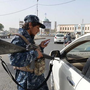9月11日,在阿富汗坎大哈的一处检查点,塔利班成员查验过往车辆驾驶员的证件。新华社 图